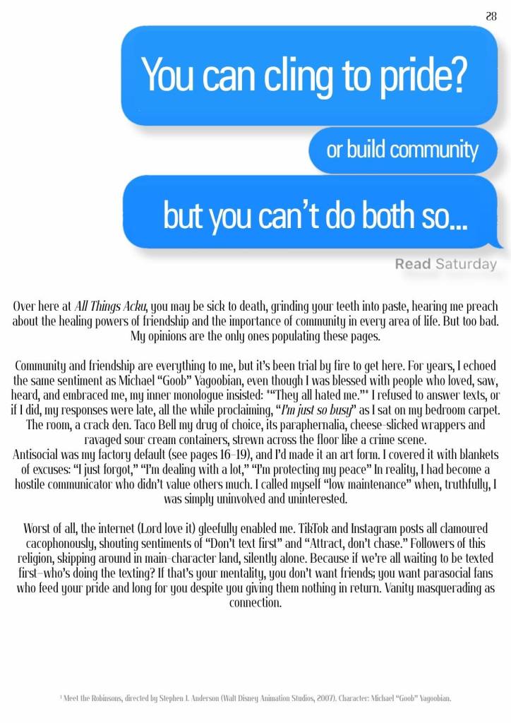 No, I did not forget that I have a blog and heres the proof. Here’s the second volume of All things Acku: Reclaiming Nostalgia, at first I wanted to get this out by August, then it was September and now here I am on the 3rd of October at 2:47am uploading my proudest creation yet- till Vol. 3 that is. I am so sorry about the quality, either it was scale it down and upload or keep high quality and watch my Macbook explode? I hope you’ll forgive me.